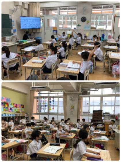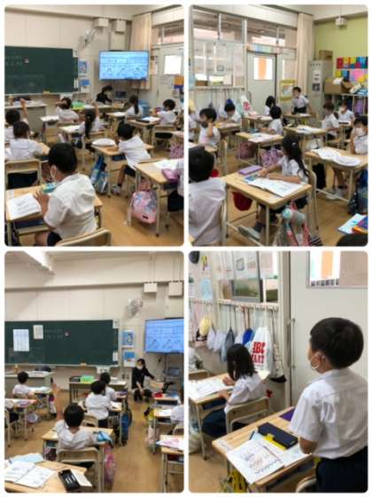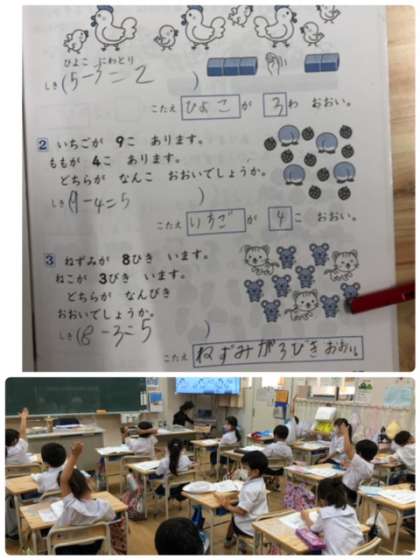 算数のひき算の練習問題を解いていました。答え合わせでは、しっかり考えを発表していました。