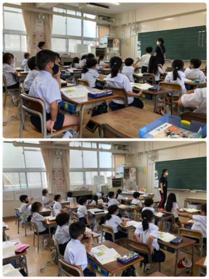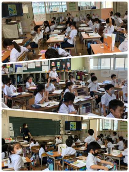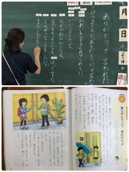 道徳の時間です。「ありがとう」をたくさん言われた人の気持ちを考えながら、ありがとうの大切さを感じでいました。みんな積極的に発表していました。