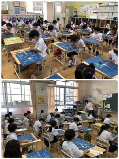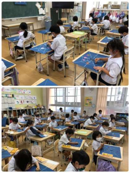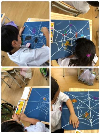 こちら1組でも、クモの巣を描いています。良い作品ができています。