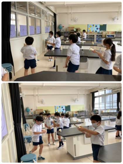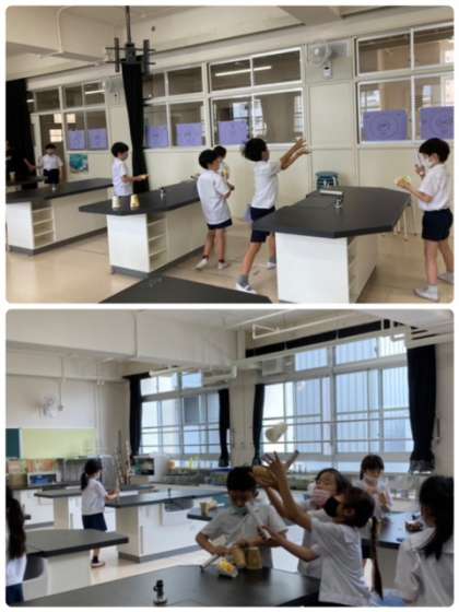 理科で学習した、ゴムの性質を生かしたおもちゃで楽しく遊びました。