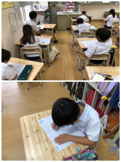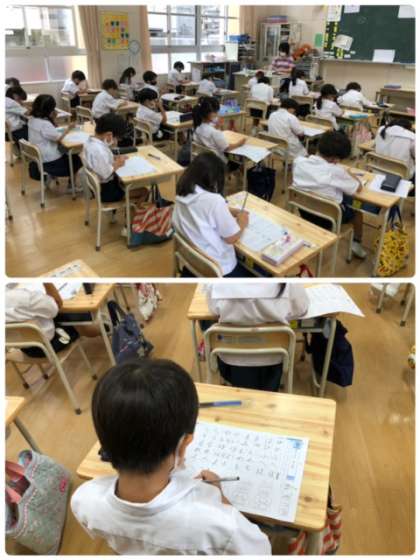 集中して、姿勢良く、丁寧に一字一字書いています。