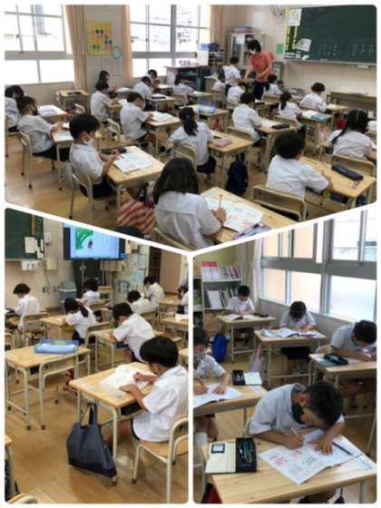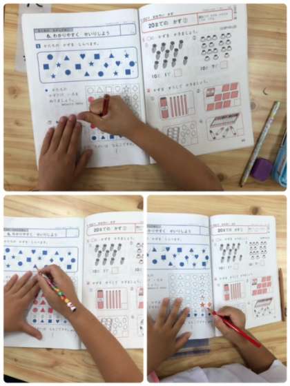 算数の時間に、練習問題に取り組んでいました。色を塗ったり、先を書いたりとしっかり取り組むことができていました。
