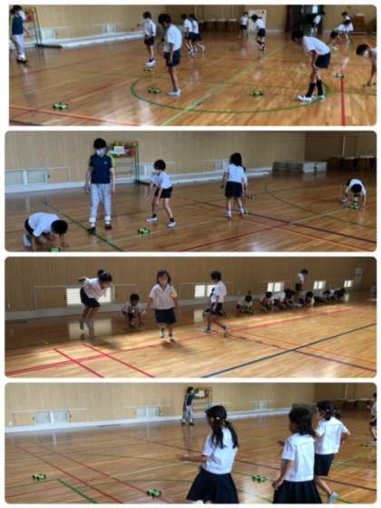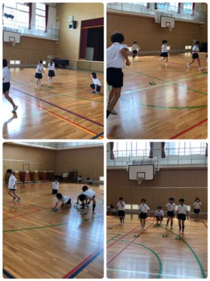 こちらは3年1組です。2組同様、輪ゴムの力を試しています。