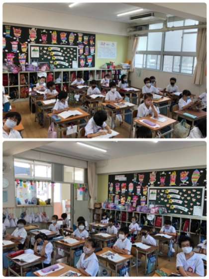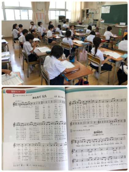 2年1組から、おもしろそうな歌が聞こえてきます。まだ習ってないはずの九九の歌!二学期の算数は心配なさそうですね。