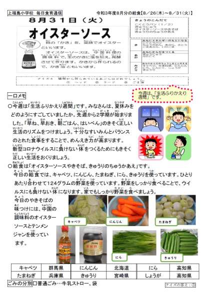 今週は「生活振り返り週間」です。「早寝、早起き、朝ごはん、排便」の習慣をつけましょう。