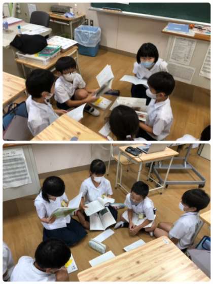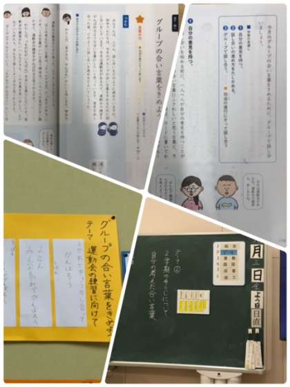 3年生の国語で、グループの合い言葉の学習があります。掃除のグループで集まり、合い言葉の作戦会議のようです。どんな言葉に決まったのでしょうか?