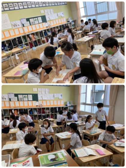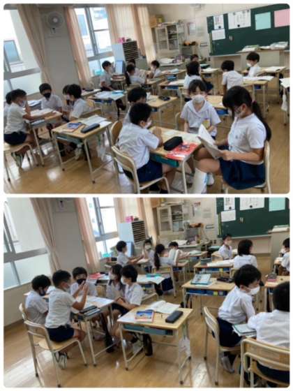 先日の1組に続き、今日は2組が国語科の授業で合言葉について話し合いました。いろいろな合言葉ができたようです。