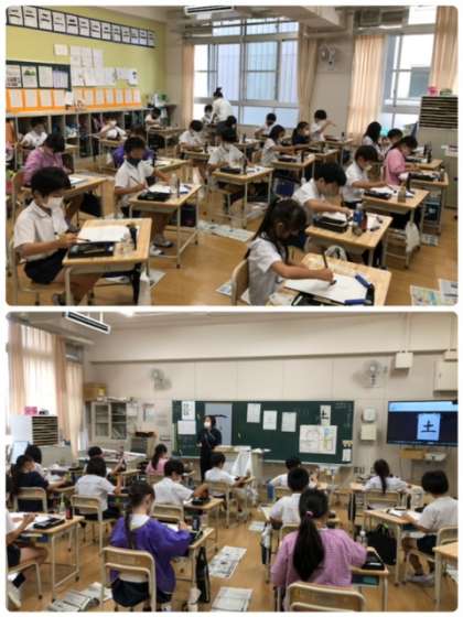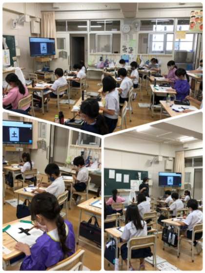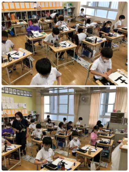 1時間目に習字をしていました。筆使いもだいぶと慣れて来たようで、いい字がたくさんありました。
