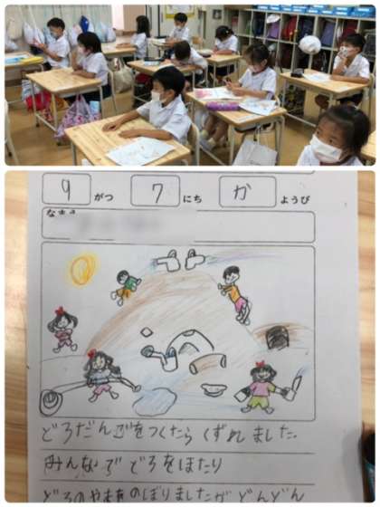 生活科での、泥遊びを生活科シートに書きました。とても楽しかった様子が伝わってきました。