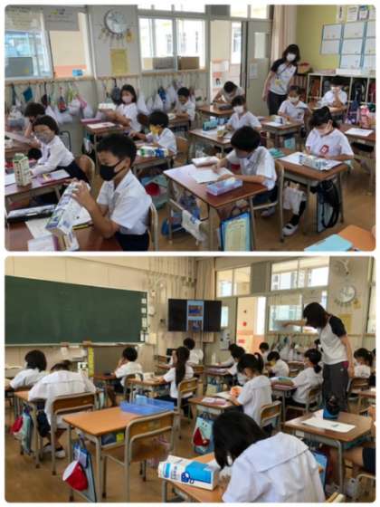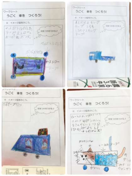 牛乳パックを持参して何やら作るようです。下書きもしっかりとできており、これから作成にあたるようです。どんな作品ができるかな?