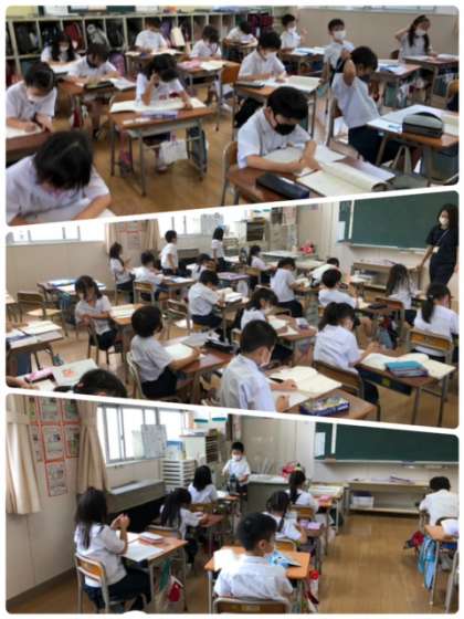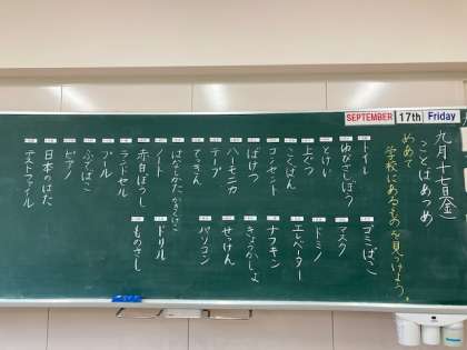 国語科の授業で、ことば集めをしました。学校にあるものを探しました。