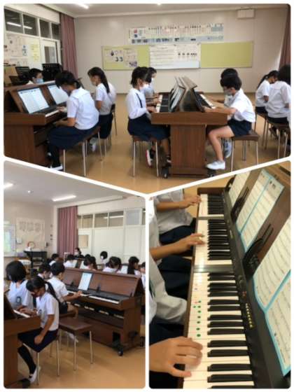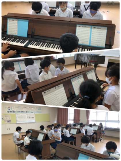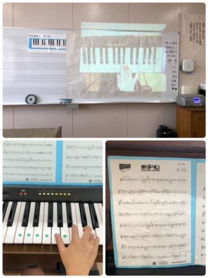 リコーダーの代わりに鍵盤で旋律をひき、メロディーを確認しているようです。