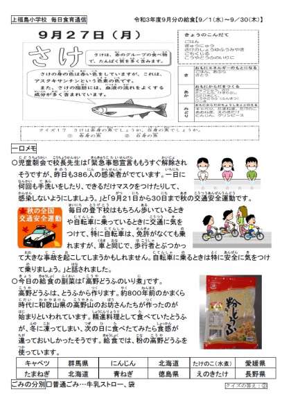 児童朝会で校長先生は「秋の交通安全運動です。特に自転車に乗るときは、気をつけましょう」と話されました。