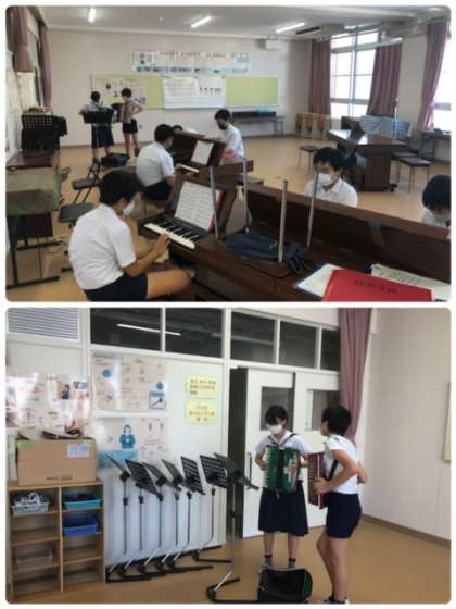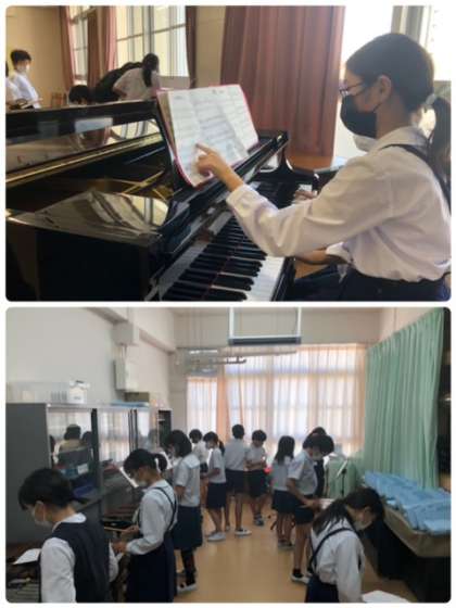 5時間目に、6年生が合奏の練習をしていました。それぞれの楽器に分かれて、丁寧に練習をしていました。