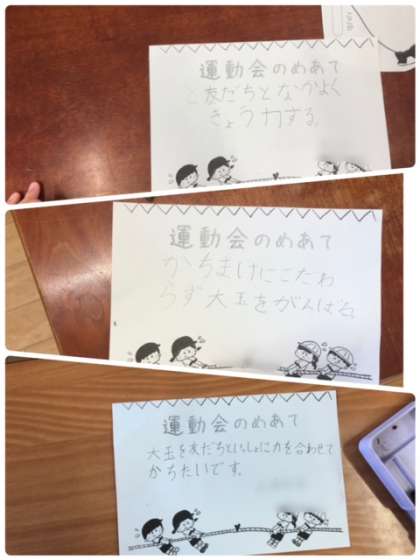 運動会に向けて、めあてをそれぞれ考えました。一人ひとりがめあてを達成できると、きっと素晴らしい運動会になるでしょうね。