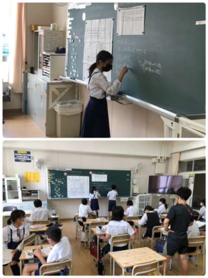 6年生の算数科では、データの調べ方と読み取りについて学習しています。それぞれ読み取った事を黒板に書いて発表します。