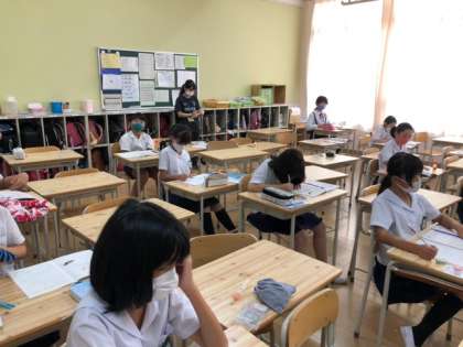 算数科で、しかくの求め方を考える学習をしています。難しい…