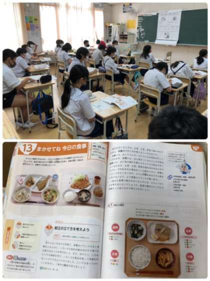 家庭科の学習で、食事について考えました。どんな食事ができるのか?調理実習が楽しみです。