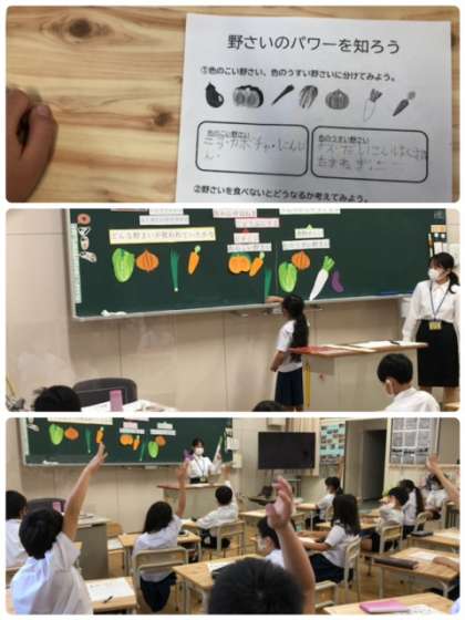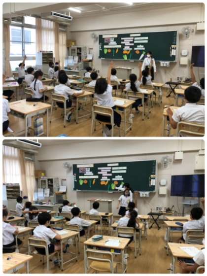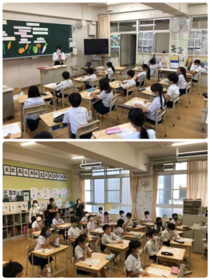 今日は、教育実習生の方々が担当クラスで栄養指導を行いました。しっかりと準備をし、とても良い授業でした。子ども達も楽しそうです。