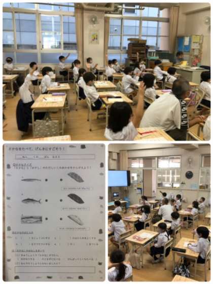こちらも実習生による栄養指導です。魚を食べて元気になろうとめあてを立てて学習しました。積極的な意見がたくさん出ました。