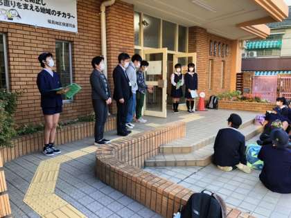 6年生が、今朝全員揃って修学旅行に出発しました。楽しい旅行になるといいですね。