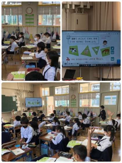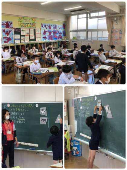 4つの動物を、囲むゲートの形の違いについて考えています。どんたグループになるかな?