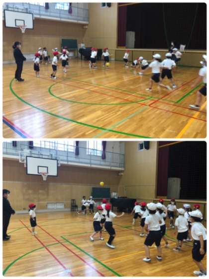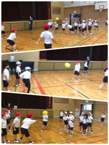 体育の時間にドッジボールをしました。雨で運動場で遊べないこともあり、目一杯身体を動かしていました。