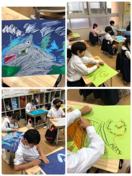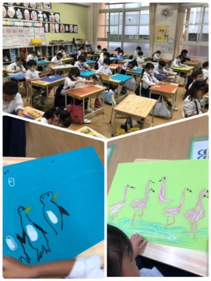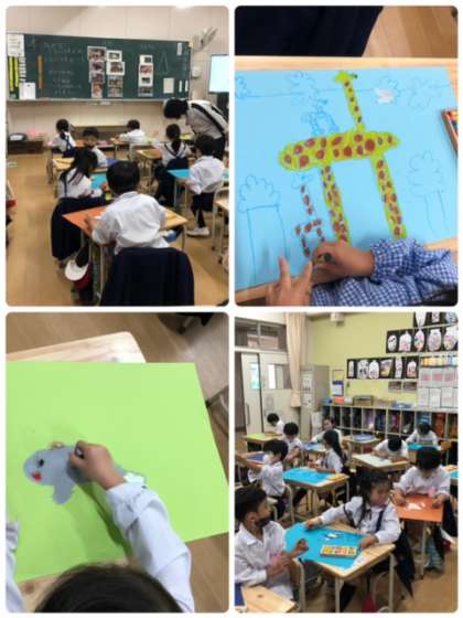 遠足で出かけた天王寺動物園で見た動物を描いています。どれも特徴を捉えた良い絵です。