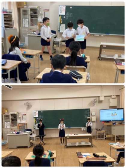 こちら2組もハロウィンパーティーを楽しんでいます。クラスみんないい顔をしています。