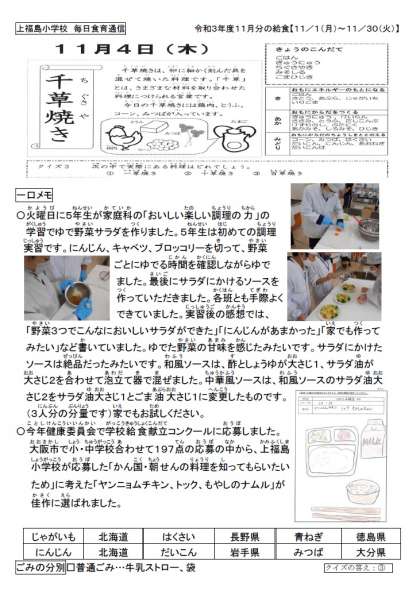 2日(火)に5年生が初めての調理実習を行いました。