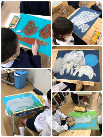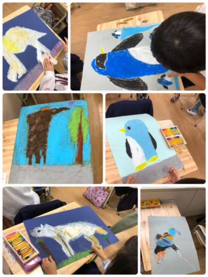 動物の作品もまもなく終わりが近づいてきました。みんな、いい作品ができました。