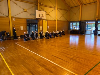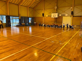 若狭塗り箸が早く終わったので、体育館で室内レクリエーションをします。