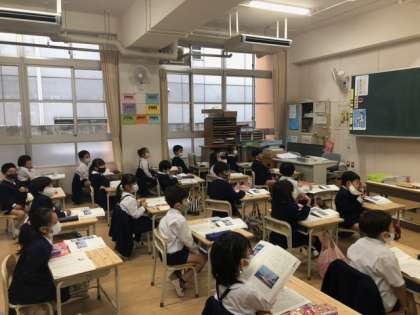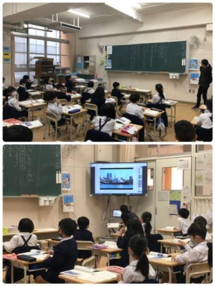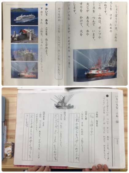 国語科いろいろな船の学習で、消防艇について学習しています。映像などを交えて、文章の理解に取り組んでいます。