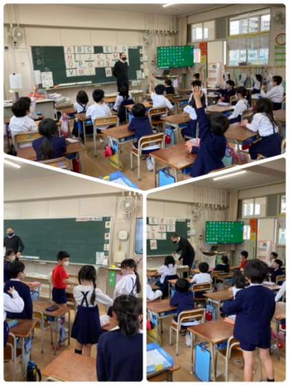 2年2組でC-NETの先生をお招きして、英語の学習をしました。みんな元気にアルファベットを発声したり、ゲームを楽しんだりと楽しい時間でした。