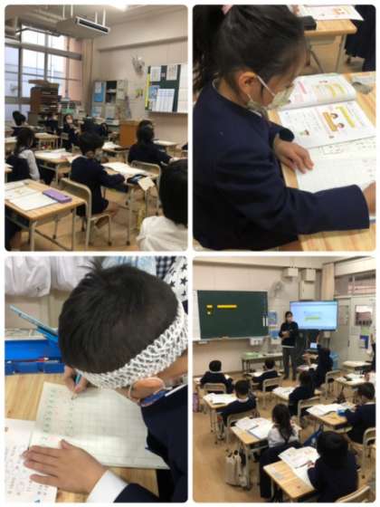 昨日からの続きで、くり下がりのあるひき算を学習しています。言葉でも、説明できるように「1から8は引けないので…」と発表していました。