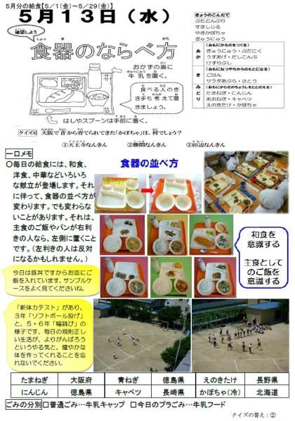 毎日食育通信:主食を意識して食器を並べましょう。(5月13日)