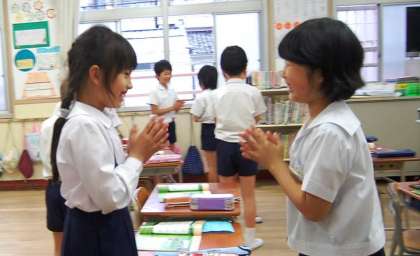 3年生が「茶つみ」の曲に合わせて、楽しくリズム遊びをしました。