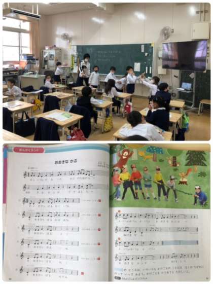 音楽科の時間に「大きなかぶ」の歌いながら、動作も織り交ぜてみました。とてもユニークで楽しそうな授業でした。