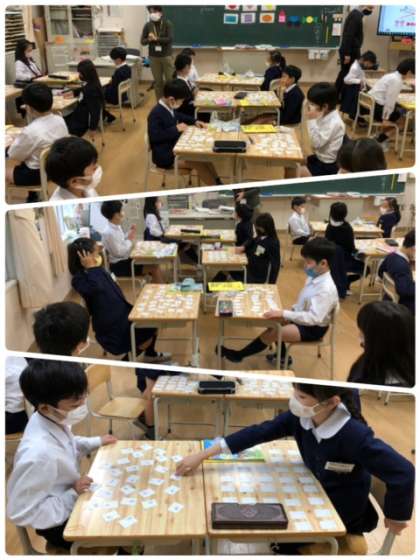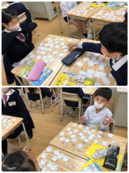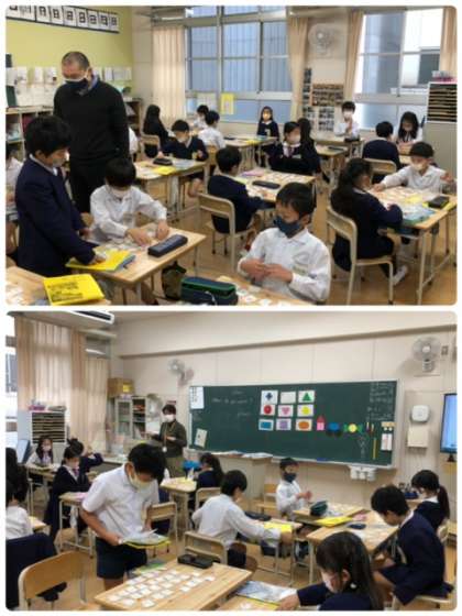 今日の外国語活動では、colorとshapesを組み合わせたカードを使い、ペア探しを行いました。ゲームを通して学習を深めています。