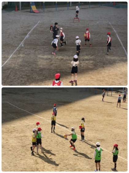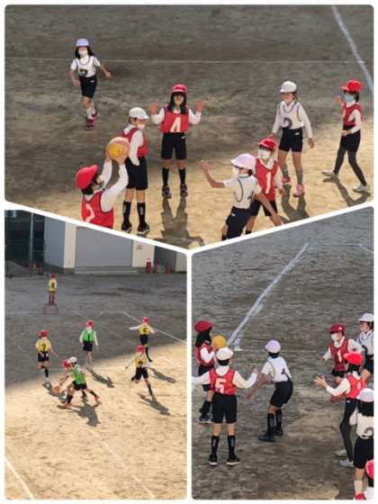 寒空の下、午後から元気に3年1組が運動場で体育をしていました。上手くパスも繋がるようになり、試合も接戦になってきました。