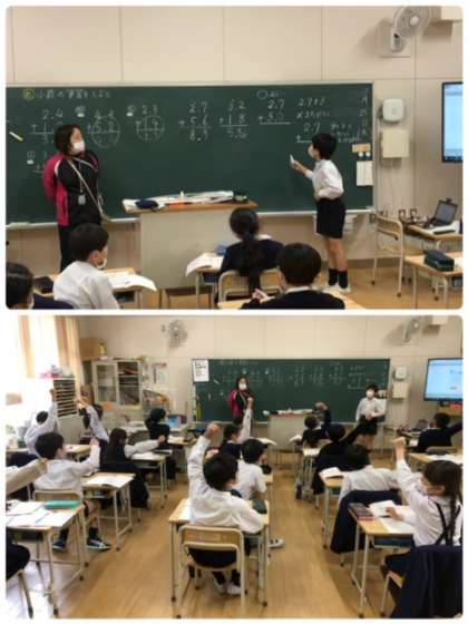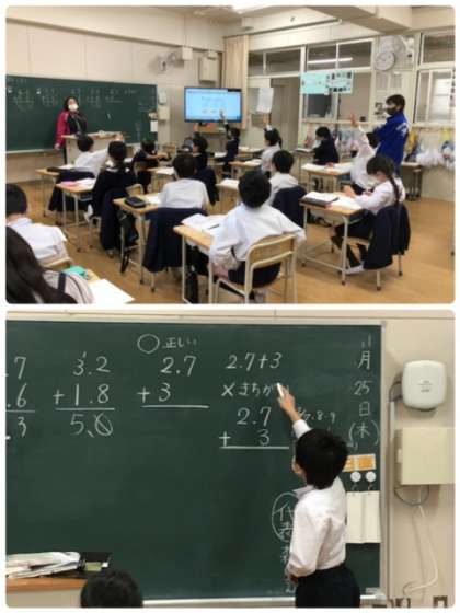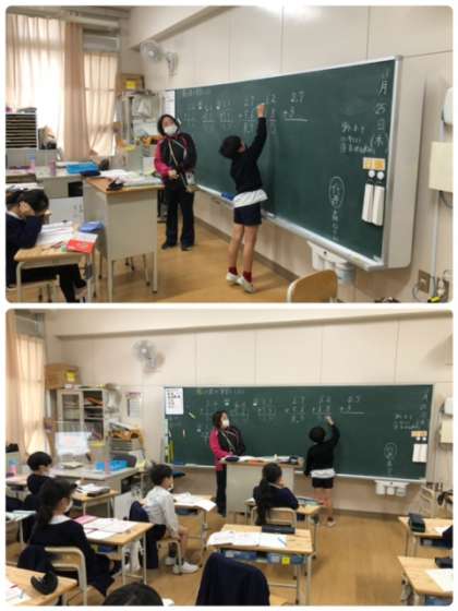 算数科の学習で筆算をしています。この問題は、どんな間違いが考えられるかな?と間違いから正しい計算方法を考えています。