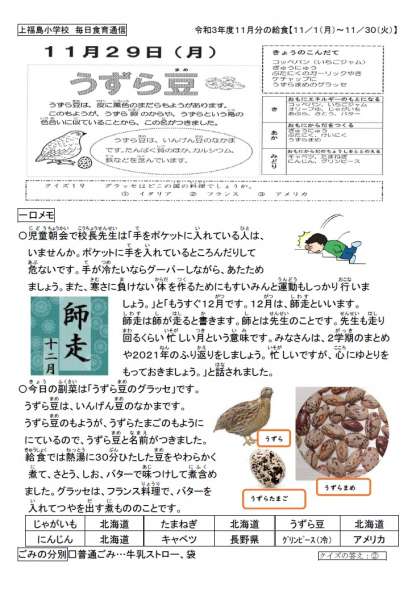 児童朝会で校長先生は「師走になります。心のゆとりを忘れずに1年を振り返りましょう」と話されました。