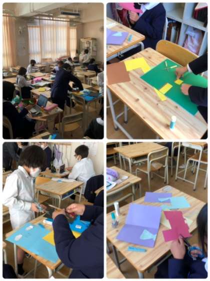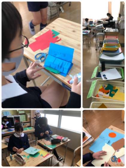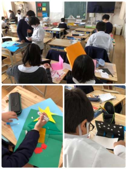 図工科で「幸せを運ぶカード」を作っています。それぞれに工夫しながら、おもしろい作品を作っています。