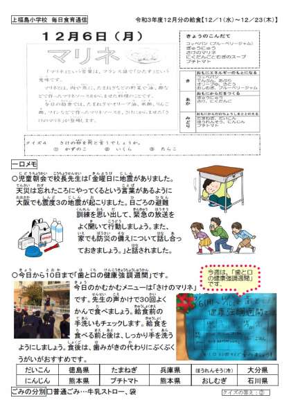 児童朝会で校長先生は「天災は忘れたころにやってきます。家でも防災について話し合っておきましょう」と話されました。