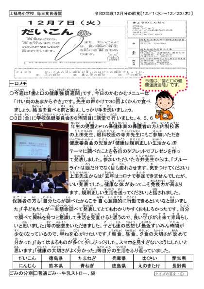 12月3日(金)に校医先生にもお越しいただき「学校保健委員会」を開催しました。