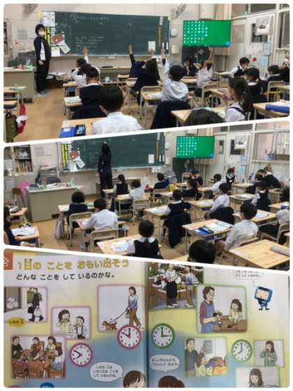 日頃の生活を振り返り、朝の時間に自分やお家の人はどんなことをしているのか発表しています。お家の人のことをよく見ていますね。