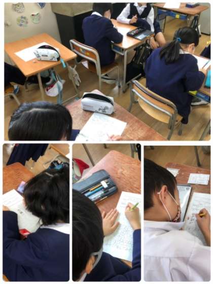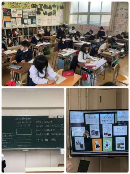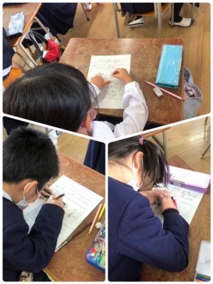 講堂で遊んだ後は、感じてことや思ったことをしっかりとワークシートにまとめました。色鉛筆も使って、挿絵もバッチリです。