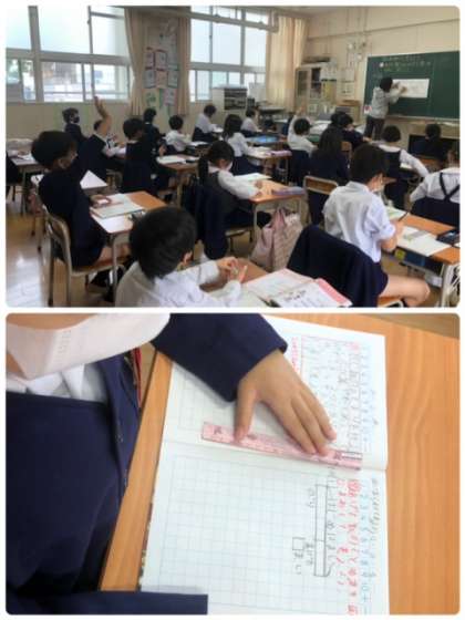 算数科の学習です。問題がより解決しやすいように、図に描いて考えています。正解できたかな?