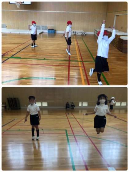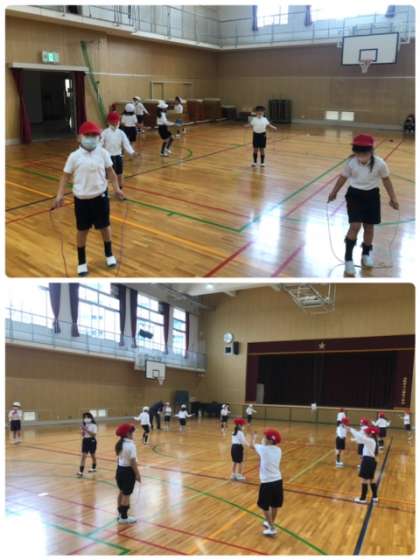 冬の体育と言えば…。縄跳びですよね!講堂で一生懸命1年生が前跳びをしていました。もっともっとたくさんの跳び方を練習しようね!