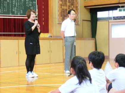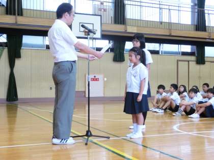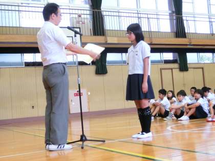2学期の始業式では、絵画の表彰や転入生の紹介、新しい講師の先生の紹介なども行いました。